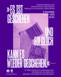 9. November 2025 | 16.00 Uhr | Mahnmal Levetzowstraße | Berlin-Moabit
